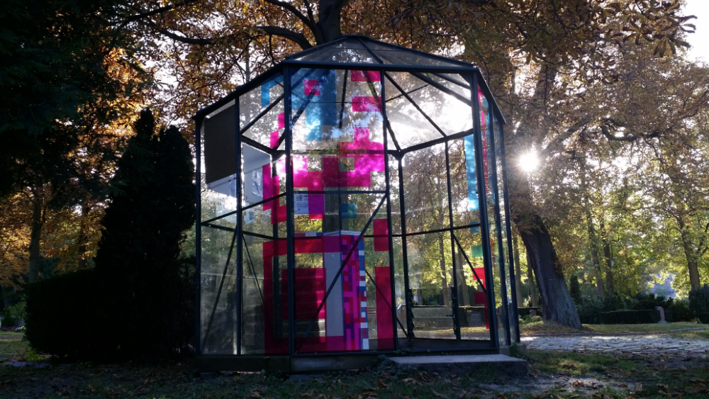 In einem Glashaus konnten die Besucher*innen den PR-Code scannen und von dort auf die Webseite PSCODE gelangen. Aktuelle Infos und Beiträge fanden sich auch im Glashaus. In der Säule mit dem PS-Code konnten die Gäste ihre Nachrichten und Gedanken hinterlassen, die ich in den Kommentaren gepostet habe.